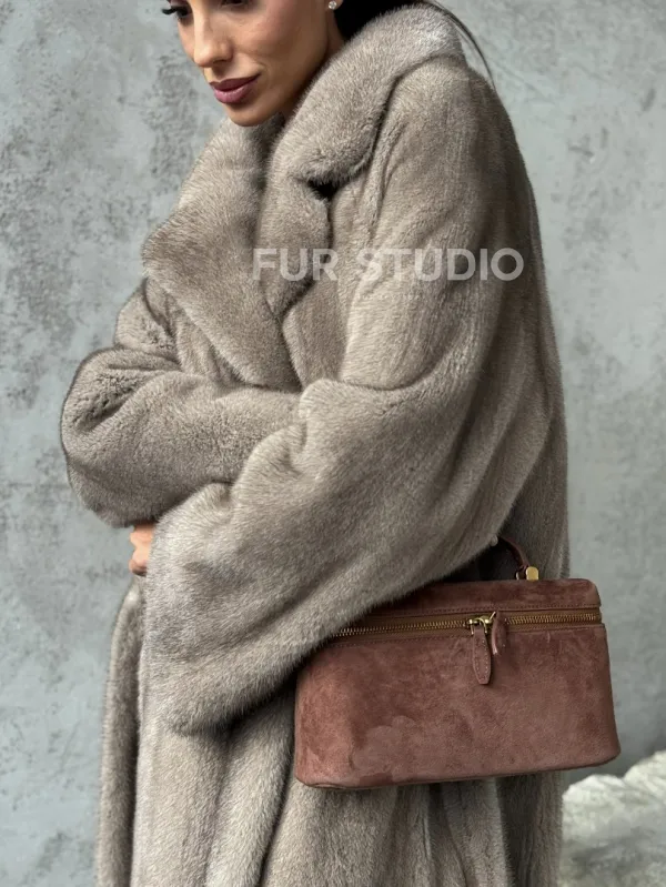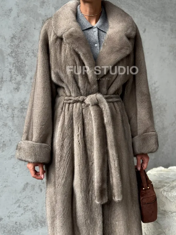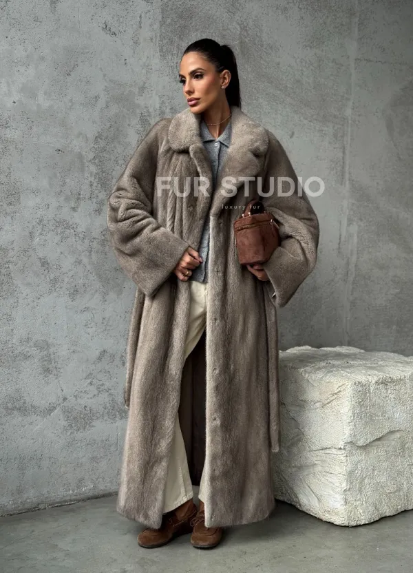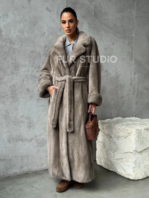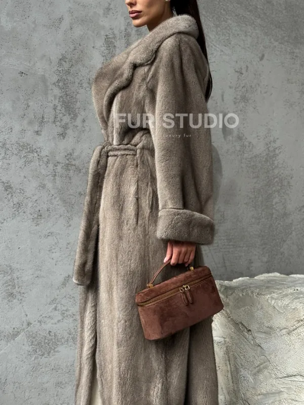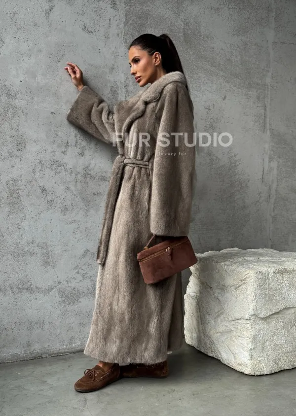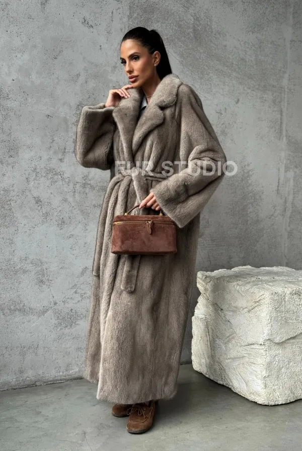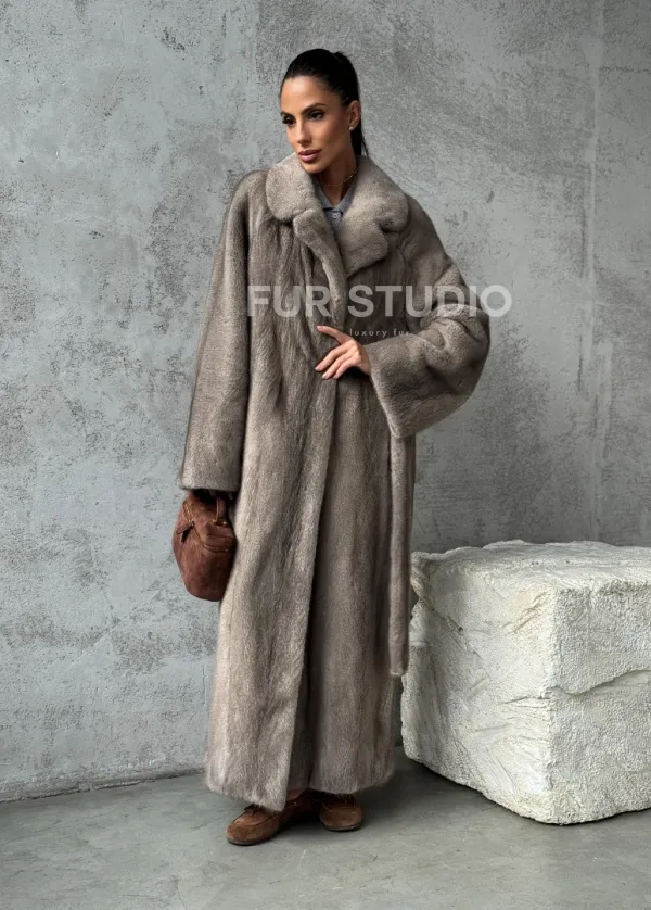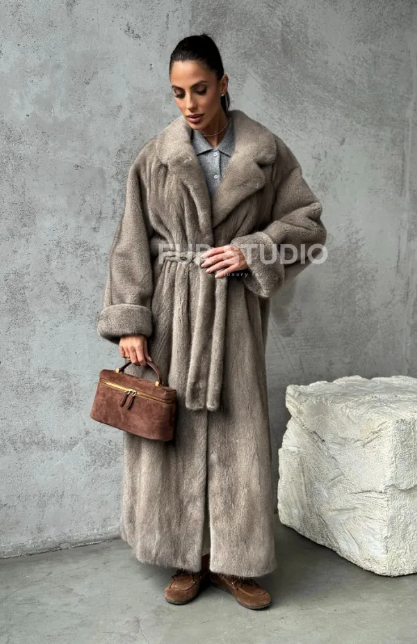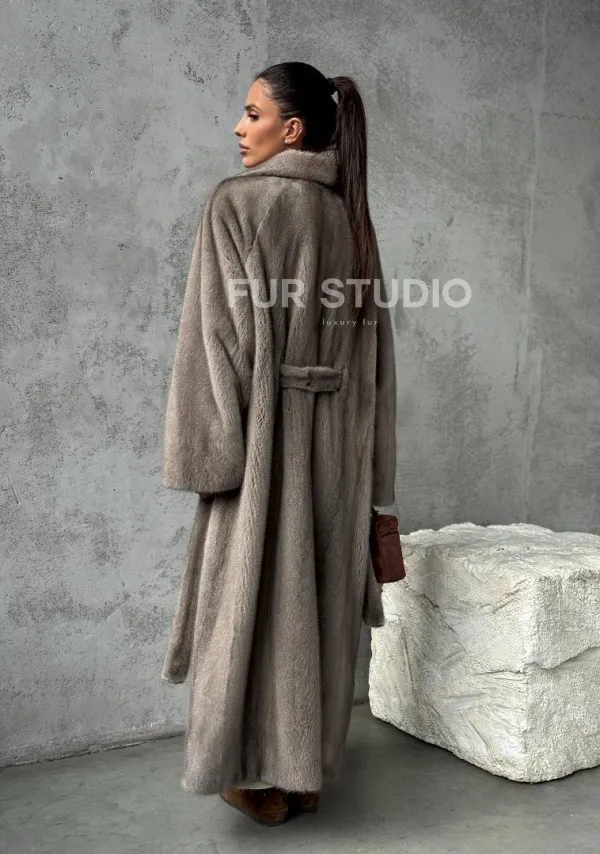 Длинная норковая шуба - цвет серый 102396