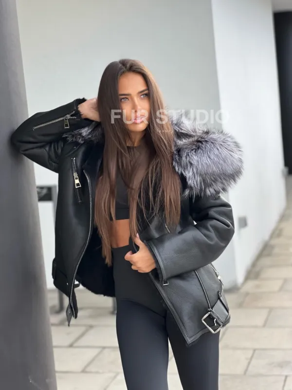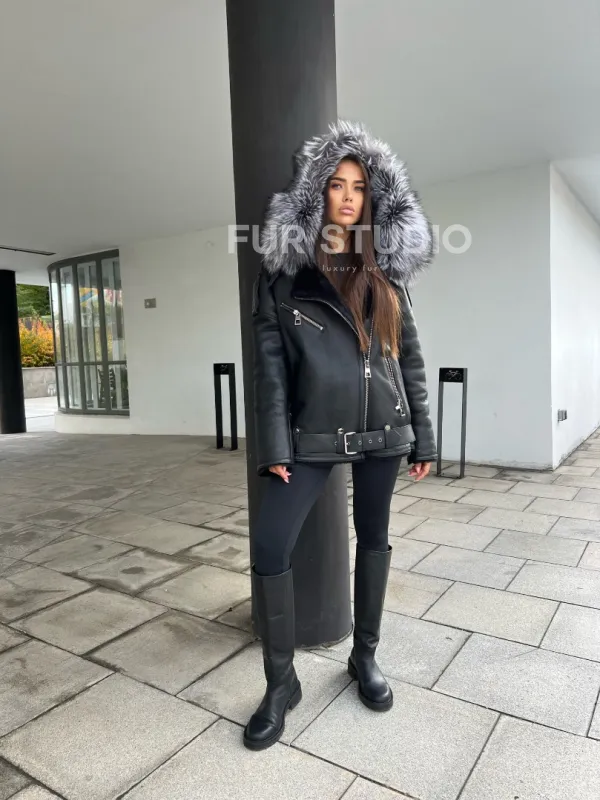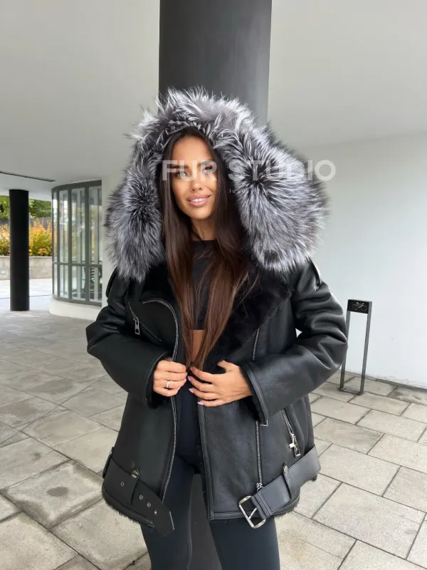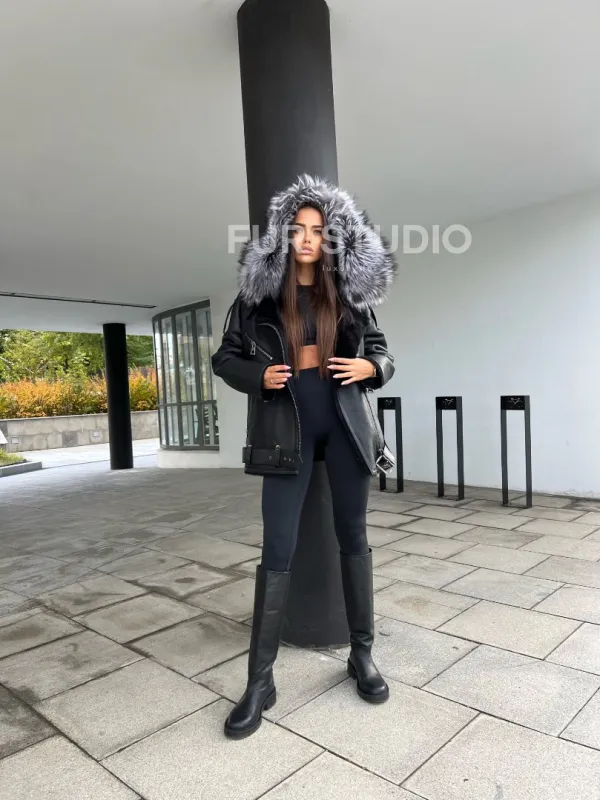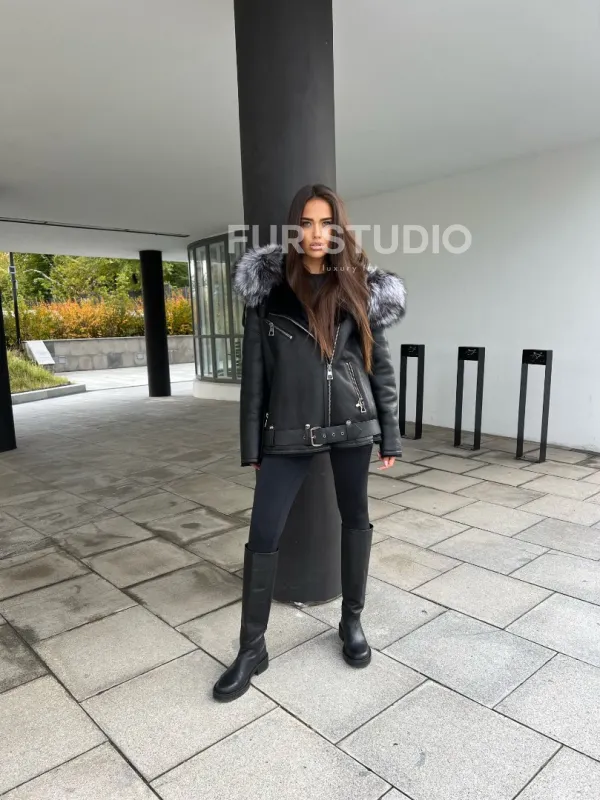 Дубленка – косуха с капюшоном из меха чернобурой лисы – выбор современных девушек, идущих в ногу со временем. Косуха – тренд последнего столетия. Модель выглядит дорого и роскошно. Кожа приятна на ощупь и не требует дополнительного ухода, а ее качество будет радовать владелицу не один год. Мех овчины не даст замерзнуть в прохладное время года.