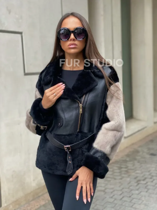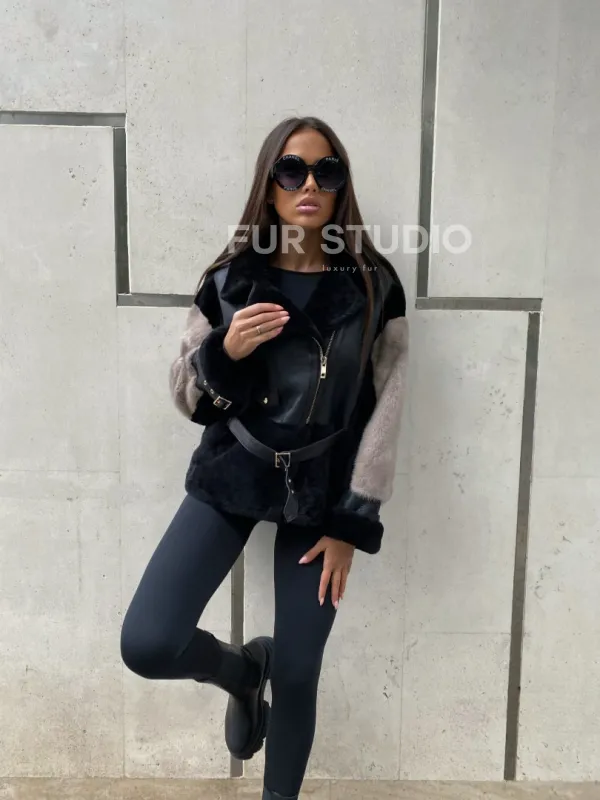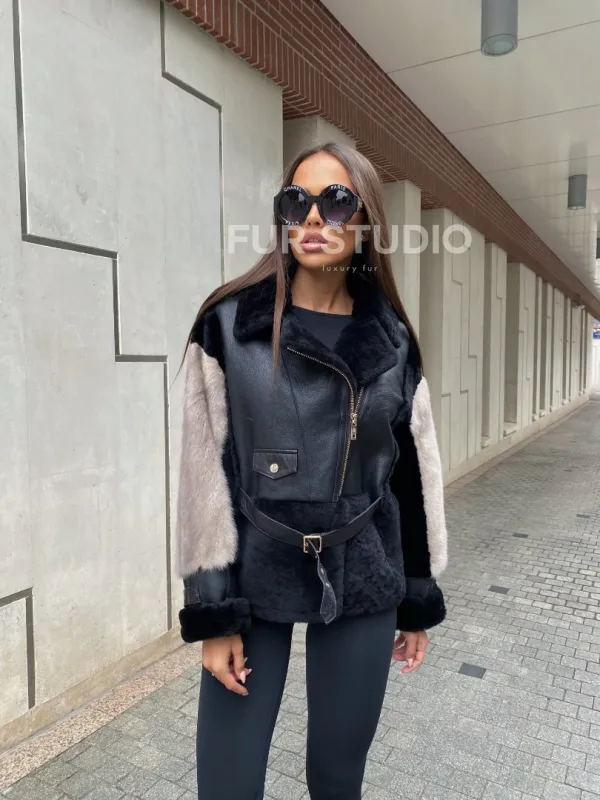Куртка – дубленка из мериноса с мехом норки – удивительное сочетание классики и современной моды. Оригинальная модель создана для девушек, которые любят экспериментировать. Уникальное сочетание кожи с мехом норки сделают образ необычным и изысканным. Вкладки на рукавах смотрятся лаконично и сдержанно. Стильный ремень очертит талию и сделает силуэт женственным.