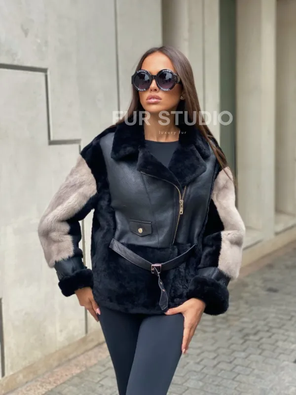Широкие манжеты подчеркнут изящность кистей. Шикарный воротник акцентирует внимание на изгибах шеи. Модель прекрасно подойдет под брюки, леггинсы и другой гардероб, сочетается с вечерним lookом. Необычный фермуар придает образу экстравагантности. Купить куртку – дубленку из мериноса с мехом норки могут женщины, обладающие безупречным вкусом.