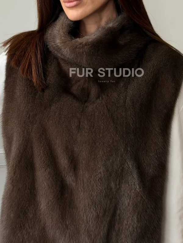Норковая манишка коричневого цвета 102742