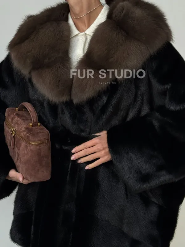 Норковый полушубок с капюшоном - летучая мышь 102399