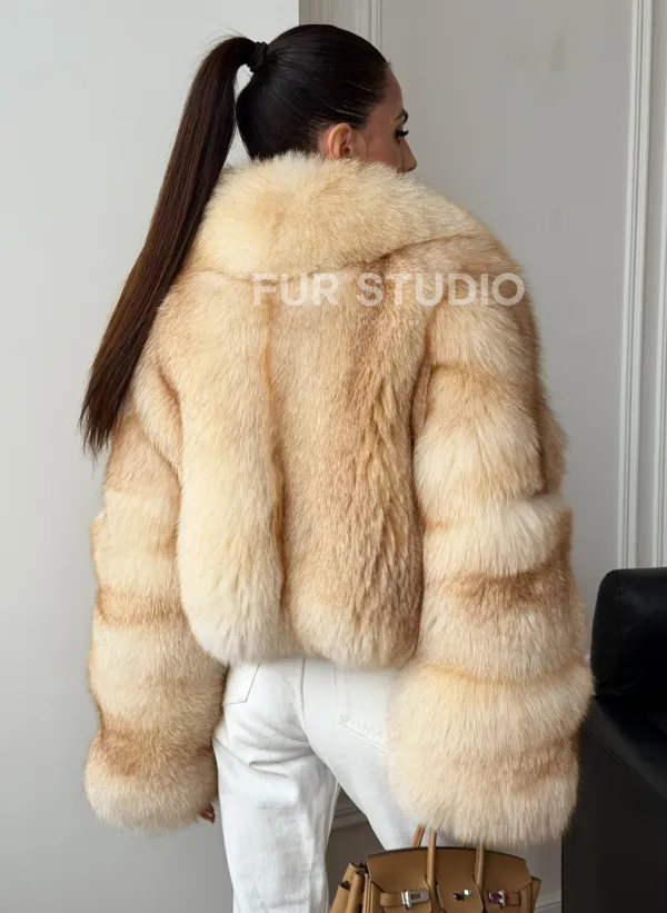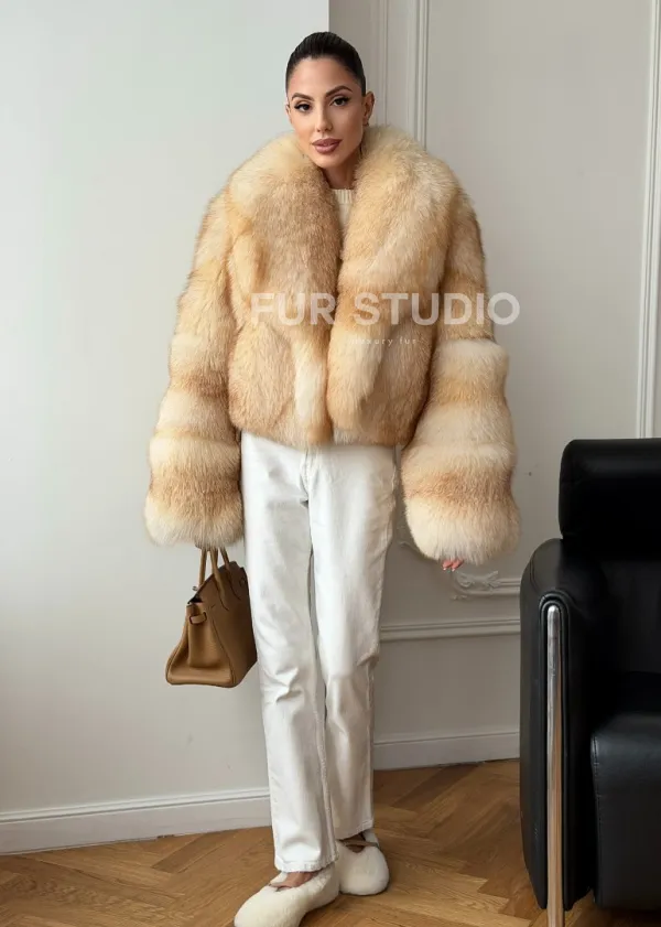 Мех данной шубы финский песец, цвет бежевый. Предлагается в размерах от 40 до 48. Длина модели 45-50 см, что выгодно подчеркивает фигуру девушек. Эта модель идеально подойдет для девушек и женщин, предпочитающих роскошные натуральные меха.