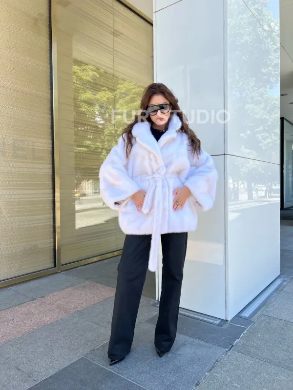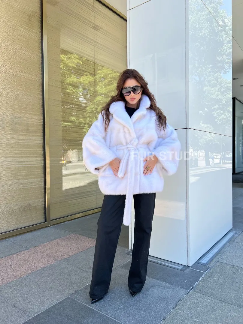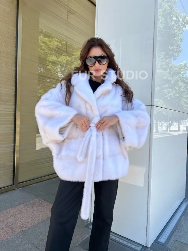 Меховой пояс очертит талию, и образ получится воздушным, нежным. Изделие согреет хозяйку в любую непогоду. Удобный воротник позаботится о том, чтобы шея не замерзла. Широкие рукава выгодно подчеркнут изящество ручек. В такой модели вы будете чувствовать себя королевой. Купить пончо из датской норки в цвете паломино – отличное вложение для дам, кто имеет безукоризненный вкус и чувство стиля.