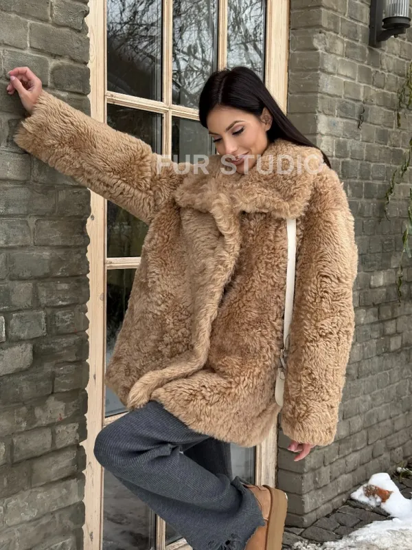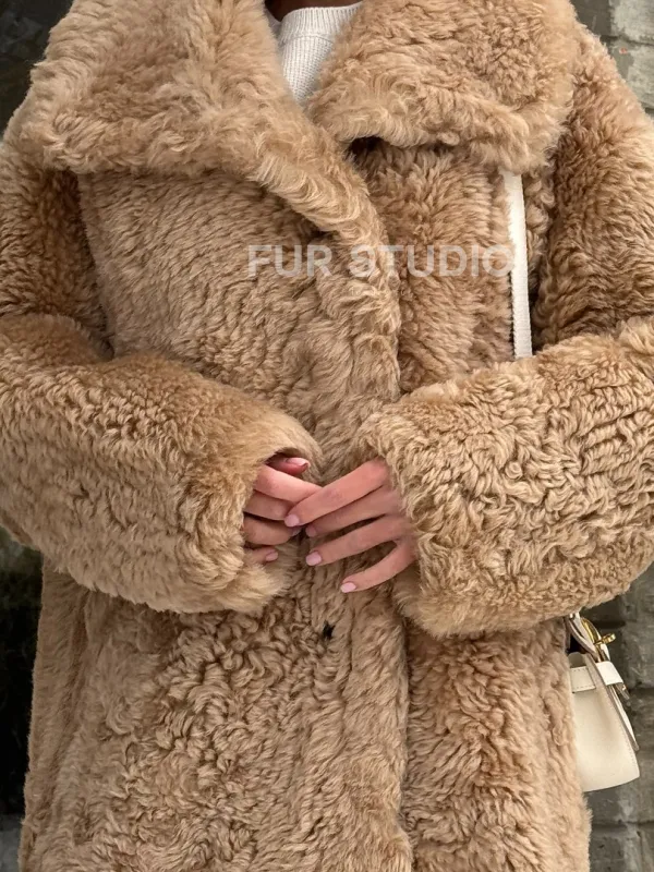 Шуба - дубленка из овчины в бежевом цвете доступна для покупки в нашем шоуруме Furs Studio в , а также предлагается удобная доставка во все города России. Обогатите свой гардероб этой дубленкой, которая прослужит вам многие годы, добавив немного роскоши в ваш повседневный образ.