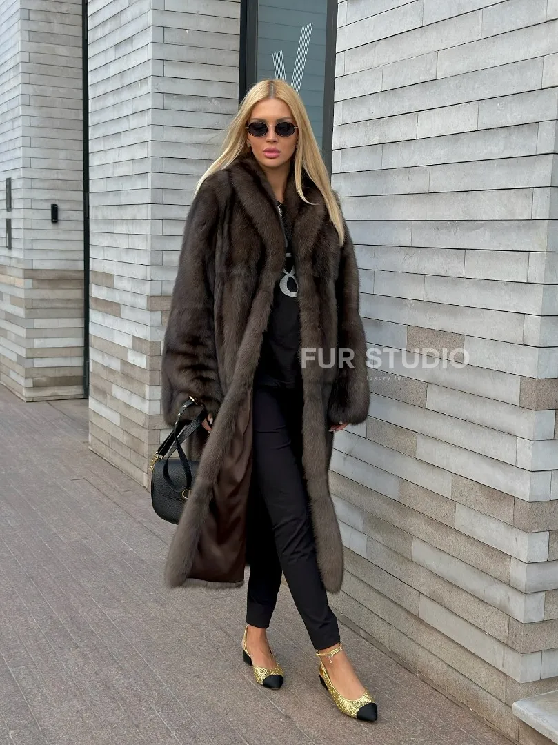 Воротник шаль согреет шею в непогоду и подчеркнет ее изгибы. Широкие рукава делают акцент на тонкости кистей. Изделие отлично сочетается с классикой, стилем casual, подойдет под вечерний look. В модели вы будете выглядеть дорого и лаконично. Купить шубу из меха соболя воротник шаль – стоящее вложение в себя, в такой верхней одежде вы постоянно будете ловить восхищенные взгляды.