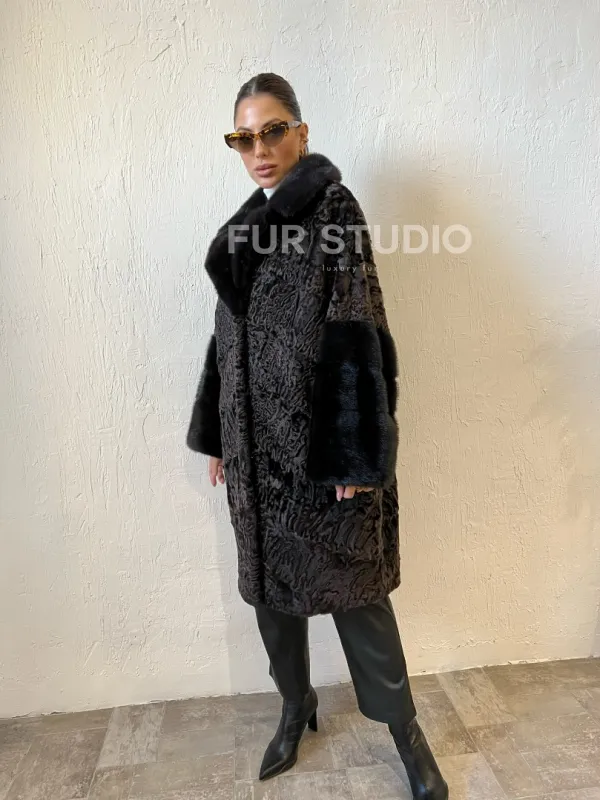Шуба из каракульчи с отделкой из меха норки доступна для покупки в нашем шоуруме Furs Studio в . У нас так же есть доставка во все города России. Добавьте немного роскоши в свой гардероб с этой шубой, которая будет служить вам многие годы.
