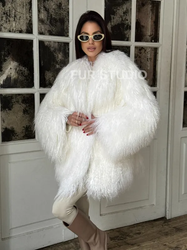 Шуба из меха ламы PREMIUM COLLECTION, английский воротник доступна для покупки в нашем шоуруме Furs Studio в . У нас так же есть доставка во все города России. Добавьте немного роскоши в свой гардероб с этой шубой, которая будет служить вам многие годы.