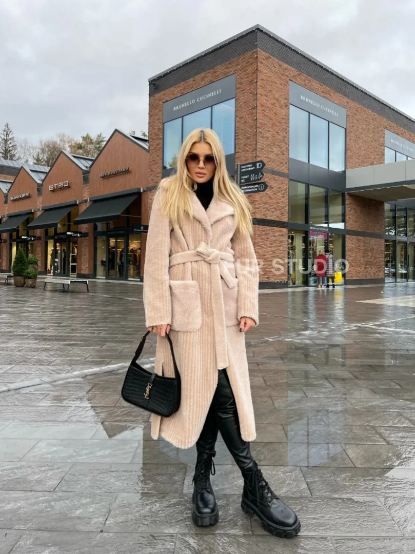 Шуба из натуральной шерсти в бежевом оттенке 100192