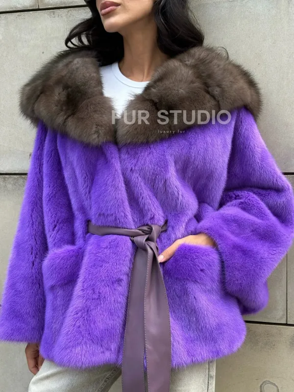 Шуба из норки Violet с капюшоном из меха куницы доступна для покупки в нашем шоуруме Furs Studio в . У нас так же есть доставка во все города России. Добавьте немного роскоши в свой гардероб с этой шубой, которая будет служить вам многие годы.