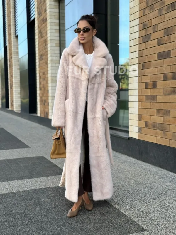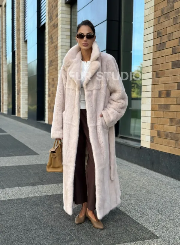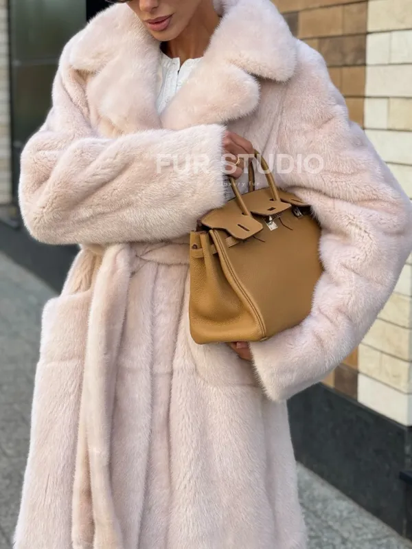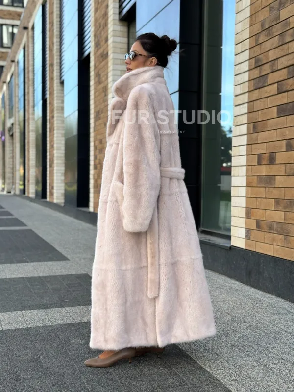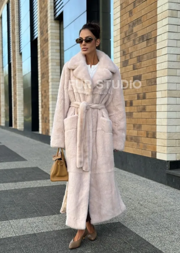 Шуба норковая - пальто с поясом, классика 102241