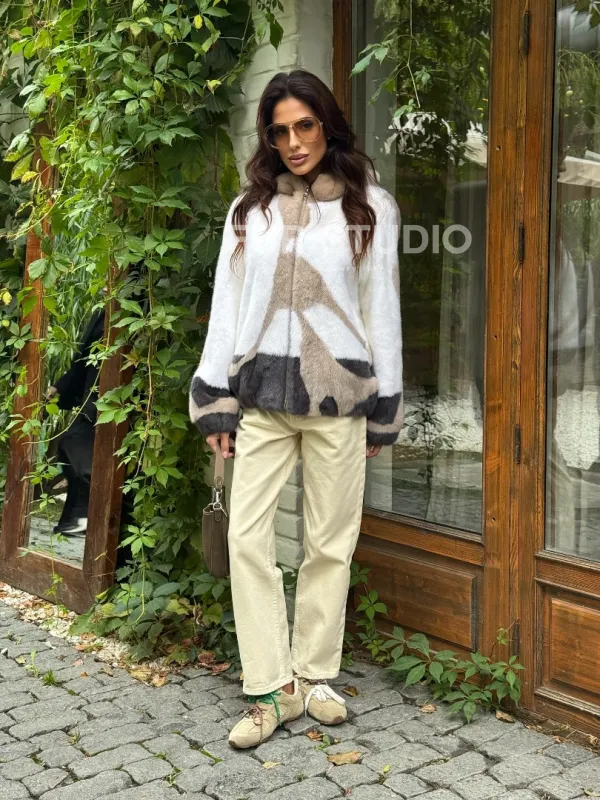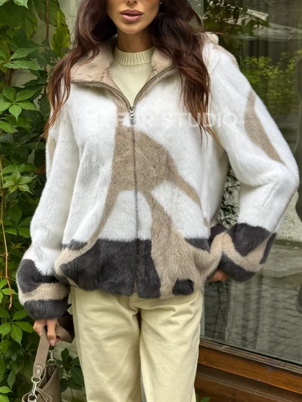 Стильная норковая куртка с капюшоном 100151
